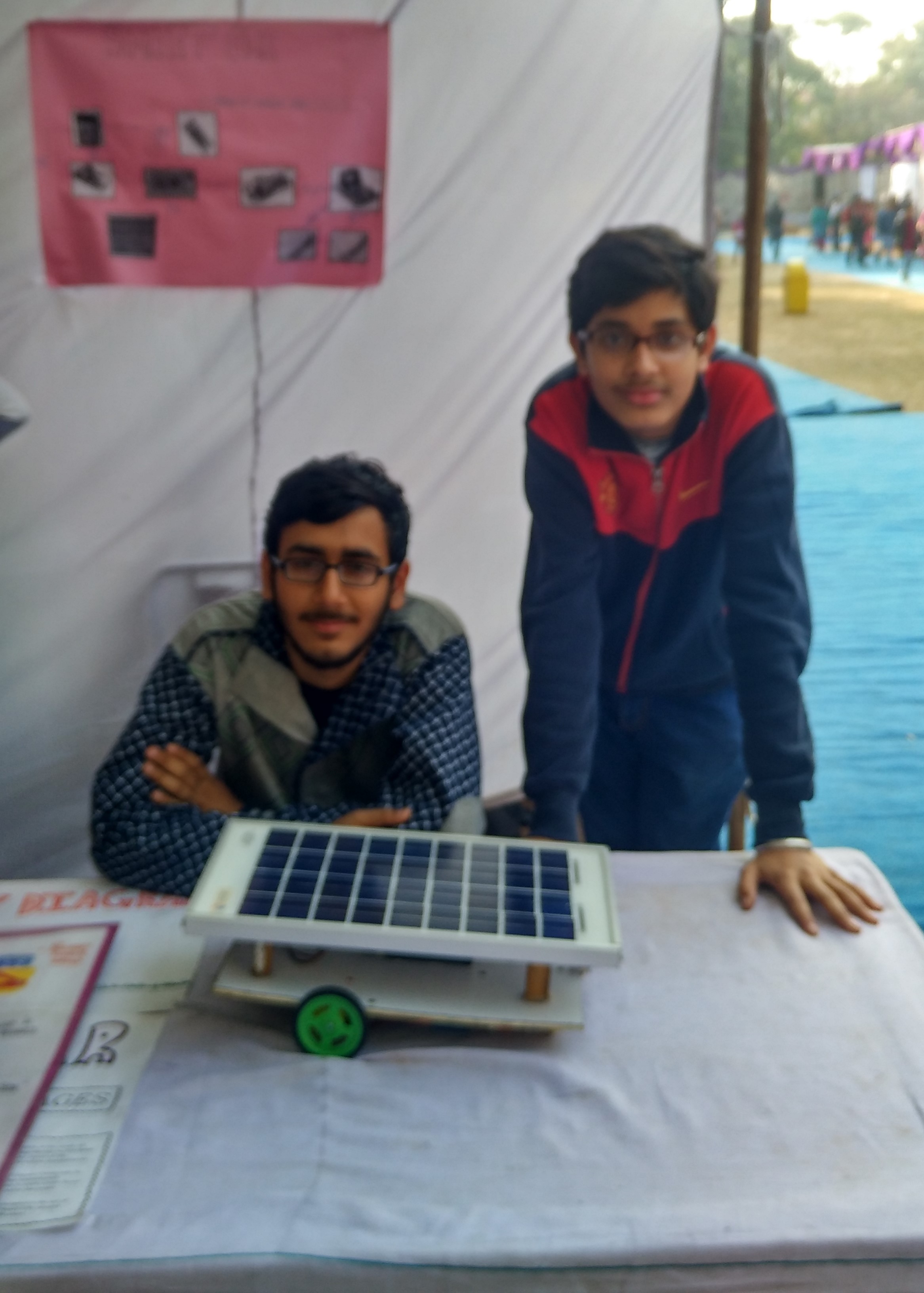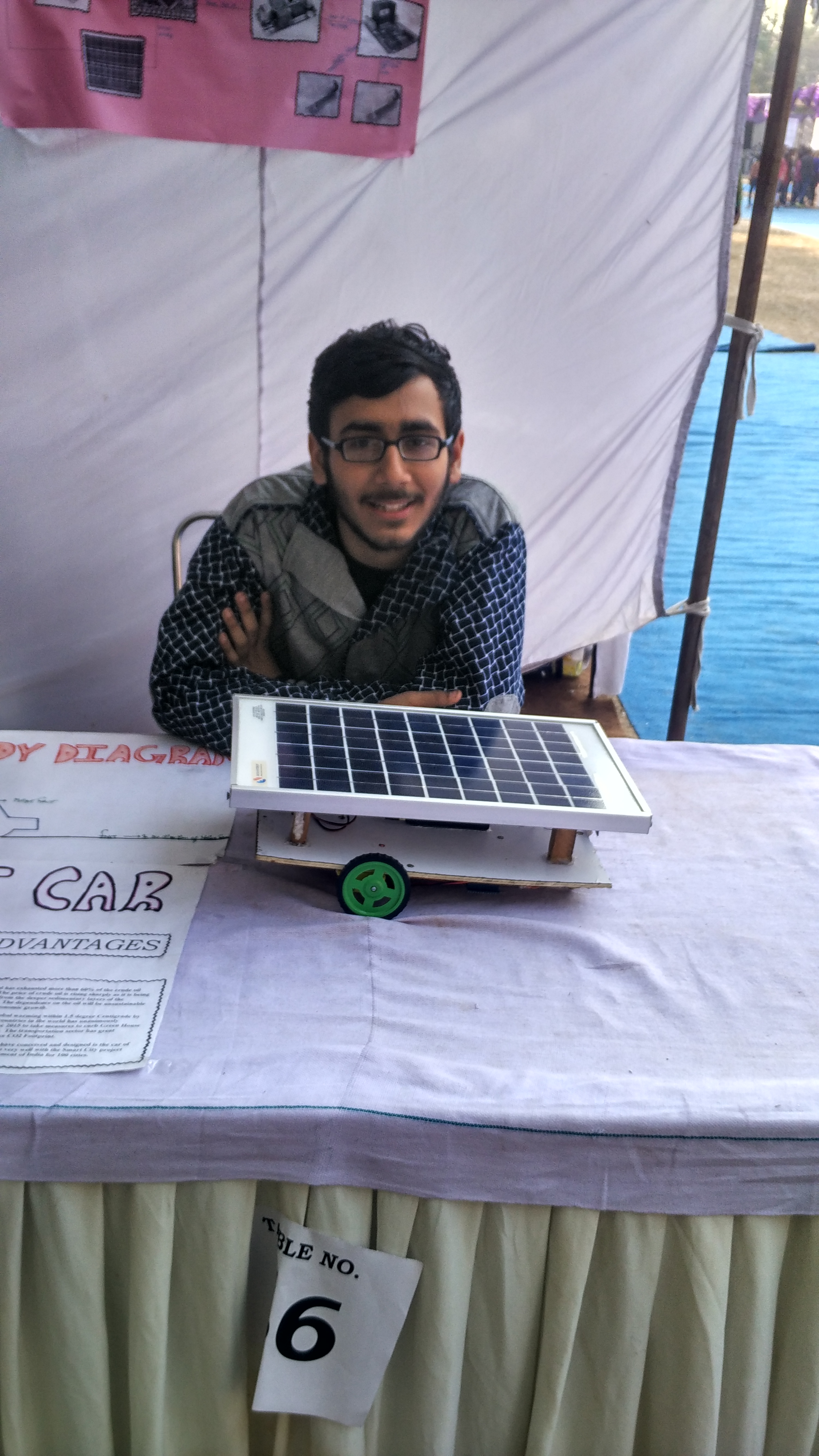 This was a car which had a solar panel on top for charging and powering of the car , it also has ultrasonic sensor in front of the car for detecting if someone comes in front while driving and deaccerlate the car to prevent accidents its was bluetooth controlled and the app was also made by me using the MIT app inventor tool.